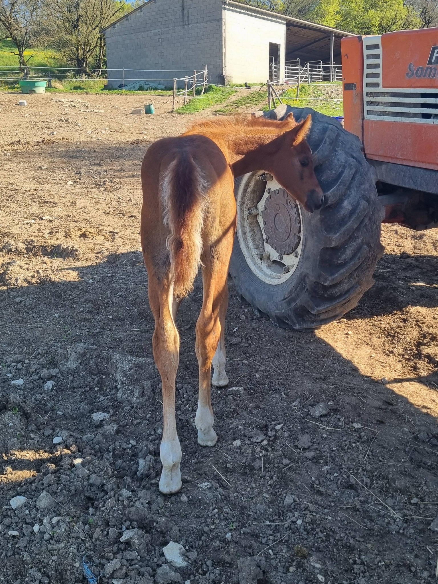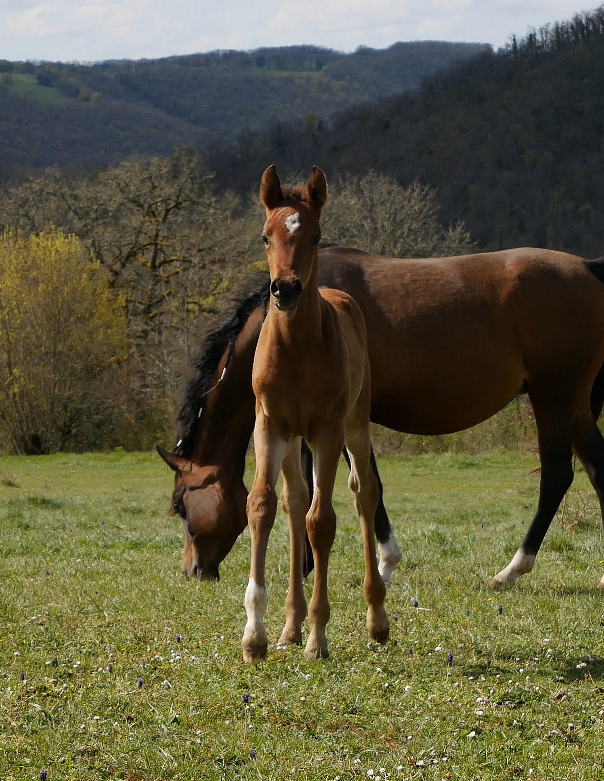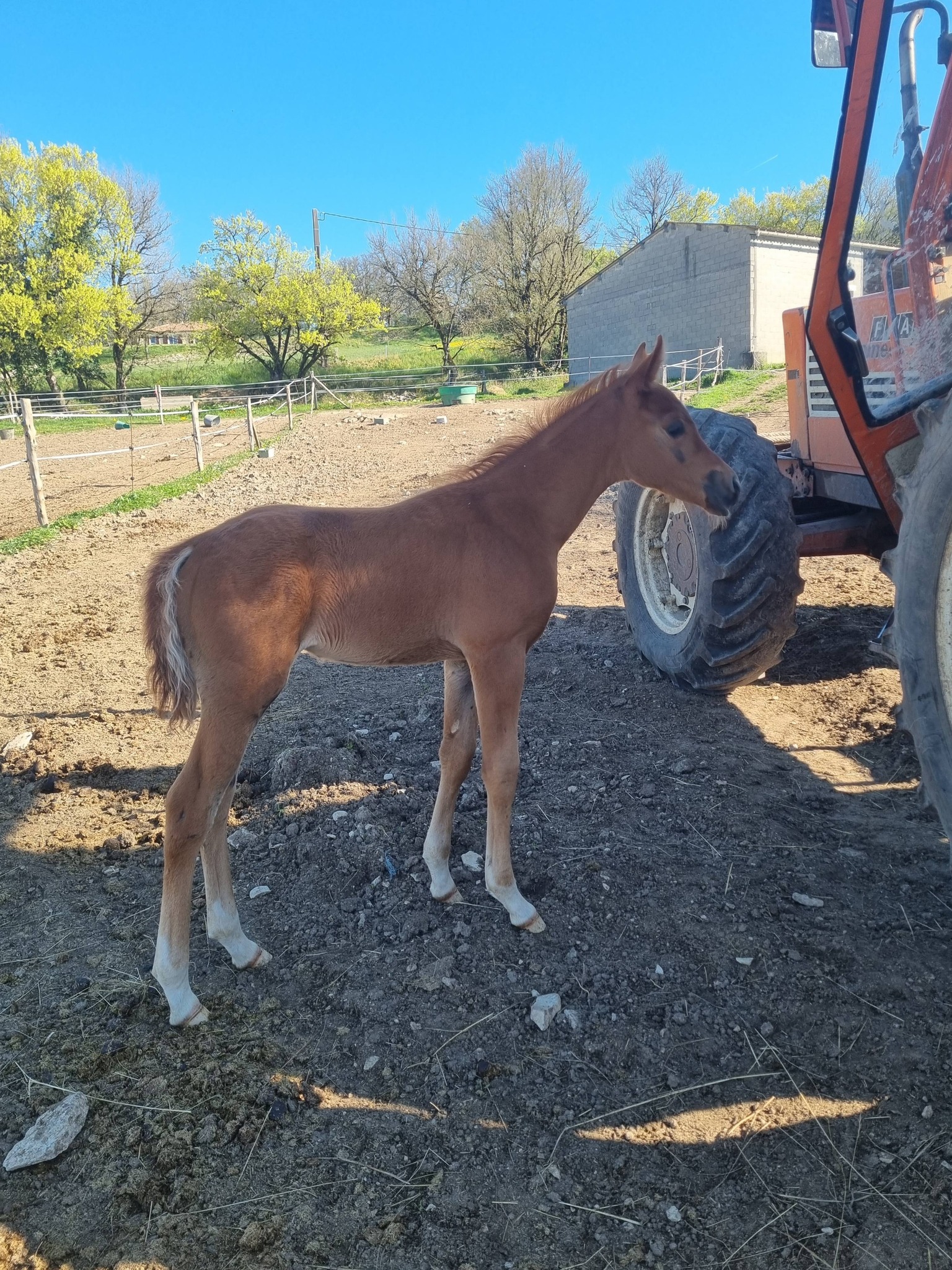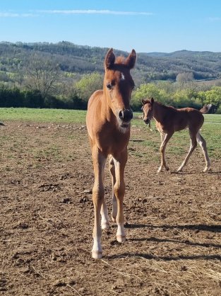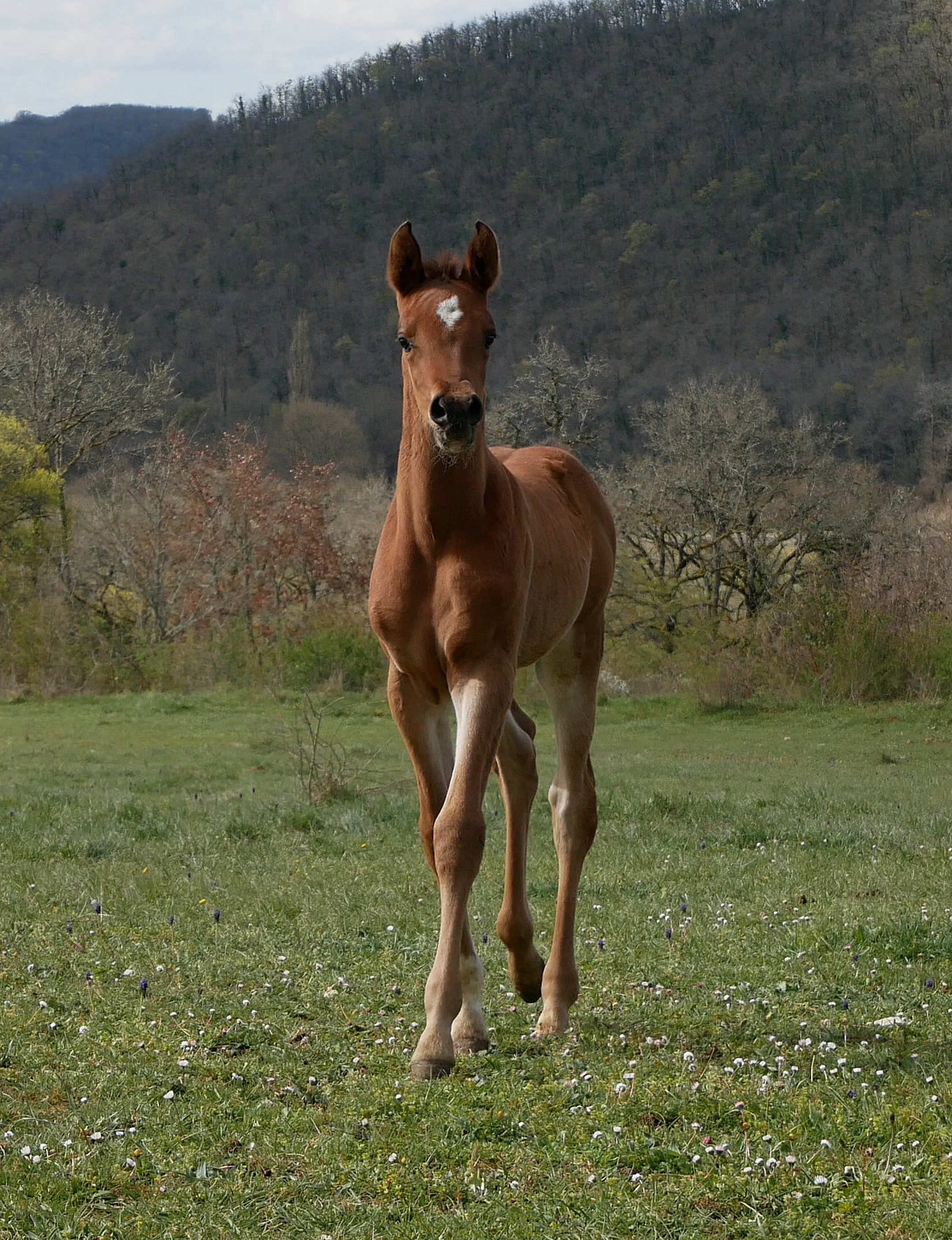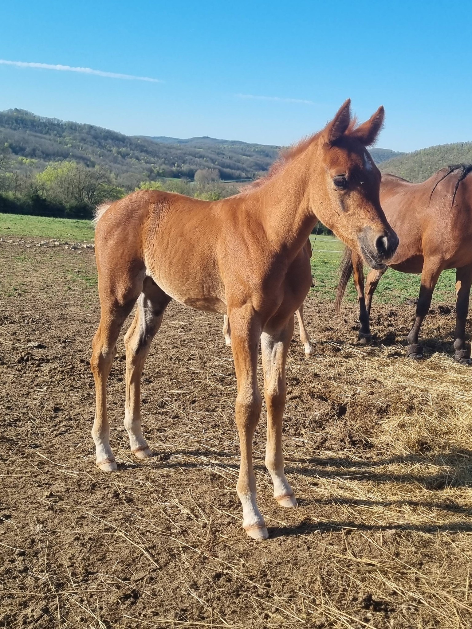 MAKZIM F – the confident and curious sport partner! From the moment he opened his eyes, Makzim F showed an interest in human interaction and exploring his surroundings. Eager to learn, bold, affectionate and energetic, this young chestnut loves to gallop at full speed, as one might expect from his extraordinary performance pedigree, descended from the finest Russian flat racing bloodlines. He already displays remarkable galloping class, plenty of power in his hindquarters, excellent balance and sure-footedness – all hallmarks of athleticism. Given his conformation, it is clear that Makzim F will be the ideal partner for anyone wishing to take part in sporting disciplines such as eventing, show jumping and horseball, as well as outdoor activities: TREC, mountain trail riding and trekking...