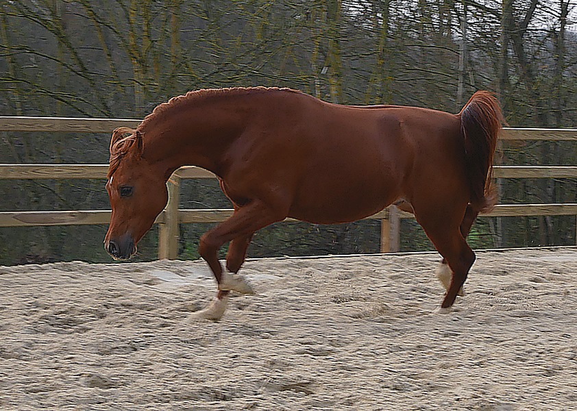 Priz is a son of the well-known AF Umoyo, 1m56, a superb liver chestnut sire bred and owned by Arabian Future, The Nederlands, Dutch national res champion, higher points of young males and golden medal in Ströhen (DE). AF Umoyo is a son of the famous Nadir I DRE****, 1m58, German and French national champion, European and All Nations Cup champion, whose genetic quality is not to proove anymore. He is the sire of numerous show champions and endurance winners and performers as well as breeding stock.