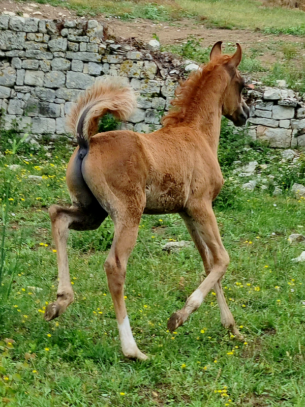 Priz présente une superbe tête bien typée, front large, du dish, de jolis yeux, un tout petit bout de nez, une magnifique encolure naturellement arquée avec une mitbah fantastique, un ensemble dos/rein/croupe solide et très bien attaché, une croupe puissante, longue et horizontale, une très bon bassin oblique et long, des membres solides avec de l'os, de bons aplombs et des mouvements à se damner, avec beaucoup de force et d'équilibre naturel ! Une conformation vraiment supérieure !