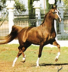 Muscat was a charismatic stallion and a sire of exception : over a hundred international champion sons and daughters of Muscat grace the world’s most recognized breeding programs. He is the 4th leading producer of Arabians all-time, and is considered the leading progenitor of the Naseem sire line. He consistently passed on his offspring : his upright, long neck, pencil thin throat latch and elegance, the harmony of function and structure which is fully his alone, his correct body and his spectacular movement.