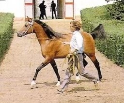Kubay Khan is a son of the prestigious Kubinec (by Balaton, european champion), *Elite stallion, born in Tersk in Russia in 1987. Kubinec is known as the best son of Balaton, legendary sire, himself called Horse of the Century ! Kubinec arrived in Europe in 1991 and began his fantastic show and breedingcareer. He win German National championship, European Championship, World Championship and the Platinum Cup. The ECAHO gave him his higher award : 5 stars for all his career and his offspring results ! Indeed, his offspring had win all the avalaible titles : National Championships, Nations Cup, European and World Championships and the famous titles of US National Champion and Scottdale Grand Champion. Kubinec's dam is Kosmetika, daughter of the famous Muscat, triple crown champion in 1980 : USA, Scottdale and Canada champion, and of the K line founder Karta 2/16(4-4-1). Karta is one of the fourth "Queens of Tersk" and is the dam of Kilimandscharo (*Elite stallion and German National Champion, sire of many good endurance and show horses) and the sister of the great Kumir (Mak). Karta is also the dame of Carolina, the Karavan's dam ; Kariatida, the Kupol's dam ; Karinka 2/21 (8-8-2), the dam of Drug, Karnaval, Kingsize, Kosmonaut, Vakansia ; Klarnet, etc.