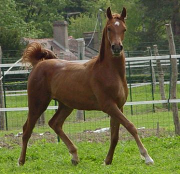 Uterine sibling of Magnificat F, sold to France, endurance, full sibling of Maravilla F - Sold to Switzerland for dressage and trail, Maïla F, sold to Belgium, endurance, Mirazj F sold to Senegal, breeding stallion, Mazkha F, sold to France, Magistral F, sold to Austria and uterine sibling of Moran F, sold to Austria, breeding.