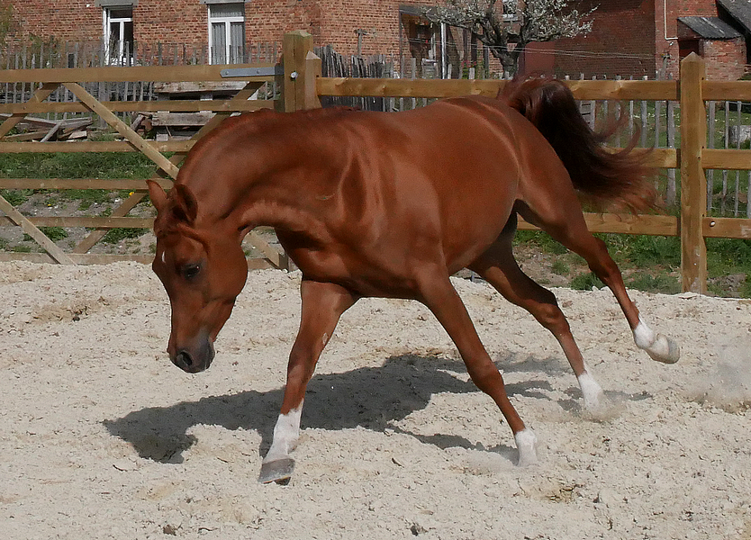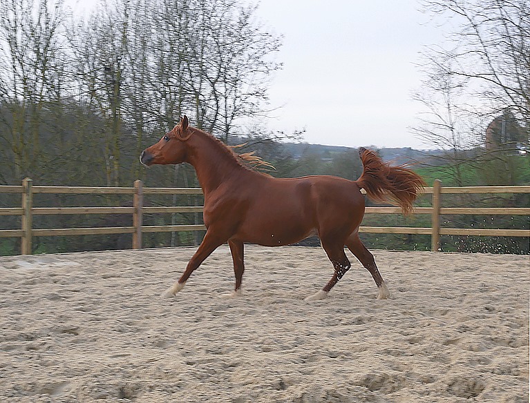 Priz is a son of the well-known AF Umoyo, 1m56, a superb liver chestnut sire bred and owned by Arabian Future, The Nederlands, Dutch national res champion, higher points of young males and golden medal in Ströhen (DE). AF Umoyo is a son of the famous Nadir I DRE****, 1m58, German and French national champion, European and All Nations Cup champion, whose genetic quality is not to proove anymore. He is the sire of numerous show champions and endurance winners and performers as well as breeding stock.