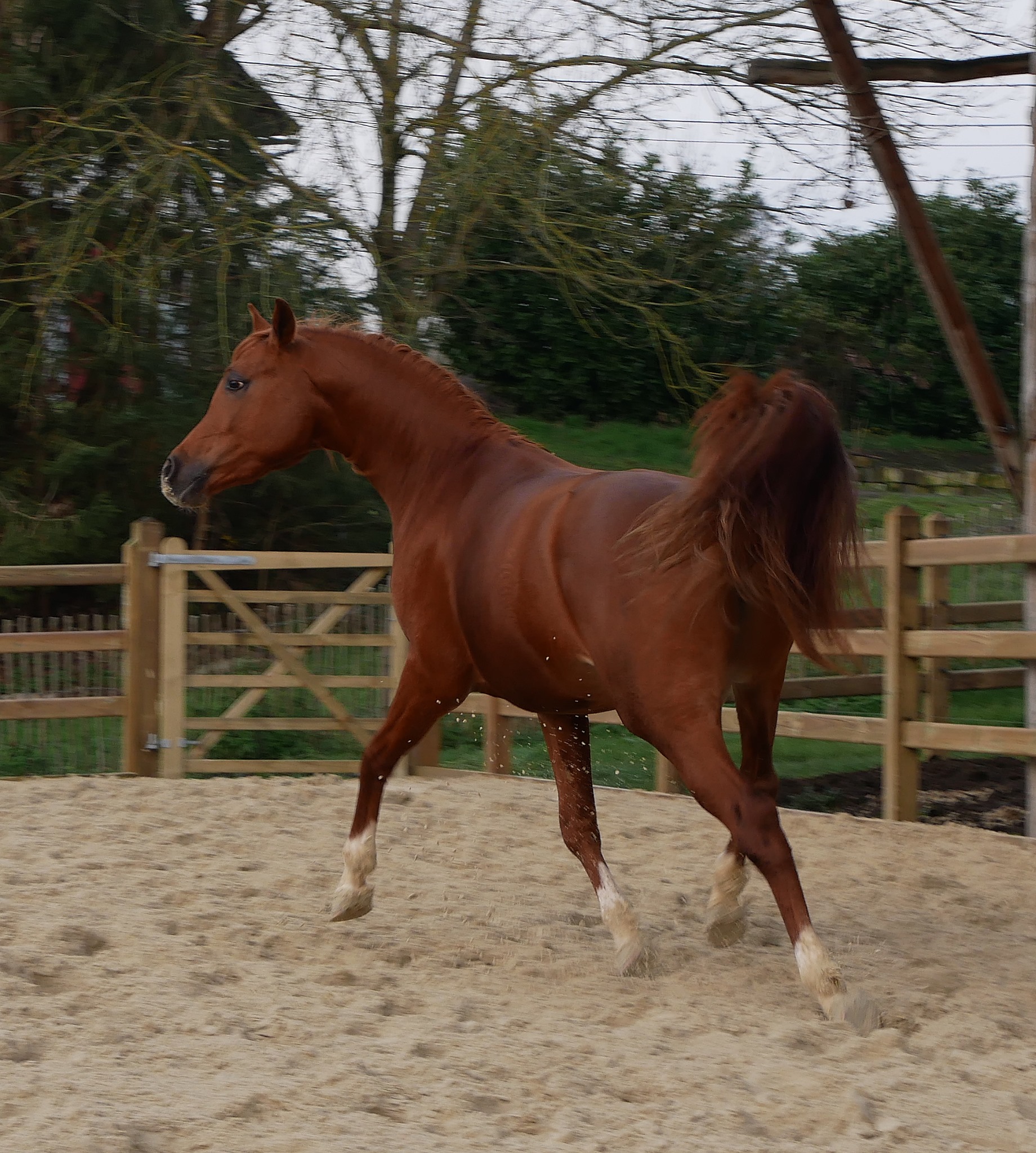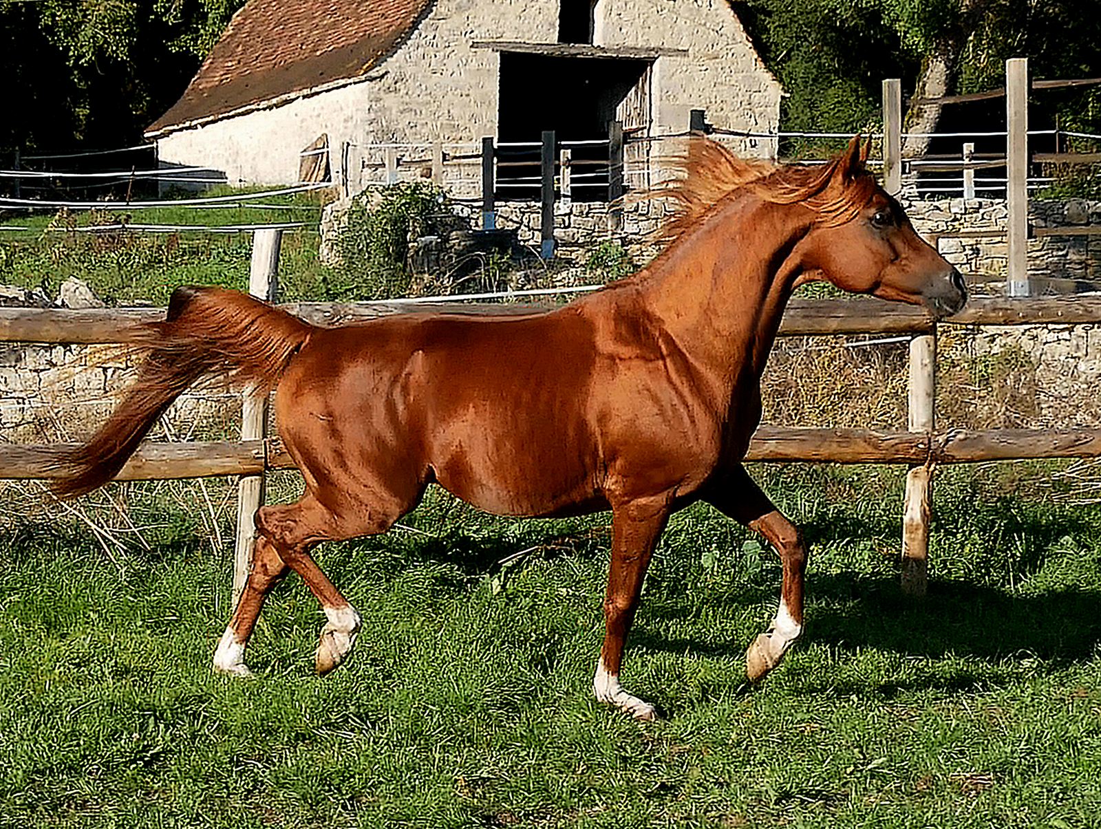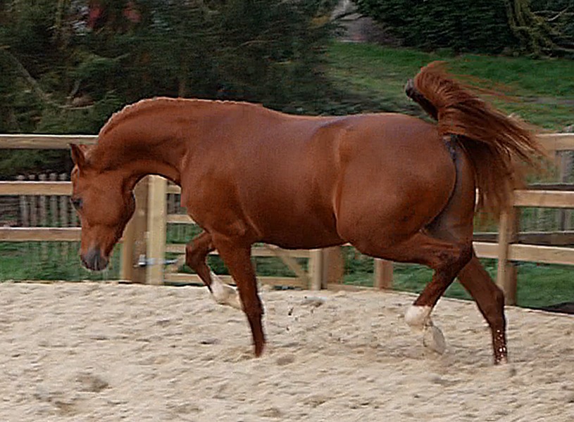 By Kosmonaut, senior champion in show, race horse performer who was used as an improver by the Trakehner stud-book. Kosmonaut is the full sibling to the Holland national champion Karnaval, sire, between many other ones, of Valujevka, one of the best race mare in Russia, winner of the 2011 WAHO Trophy and dam of 14 excellent racehorses, used with great success in breeding too. The dam of Kosmonaut is the legendary Karinka 2/21 (8-8-2-1-2),, the dam of Drug, Dre***, 5/35 (13-9-4), European show champion and winner of three prestigious stake races : the Russian Derby, the Coupe d’Europe in Evry and the Al Nayan International at Kempton Park in England. Drug is the sire of our former broodmare Pokupka, of the endurance horse producer Karesi DRE*** and of numerous wonderful race and show horses.