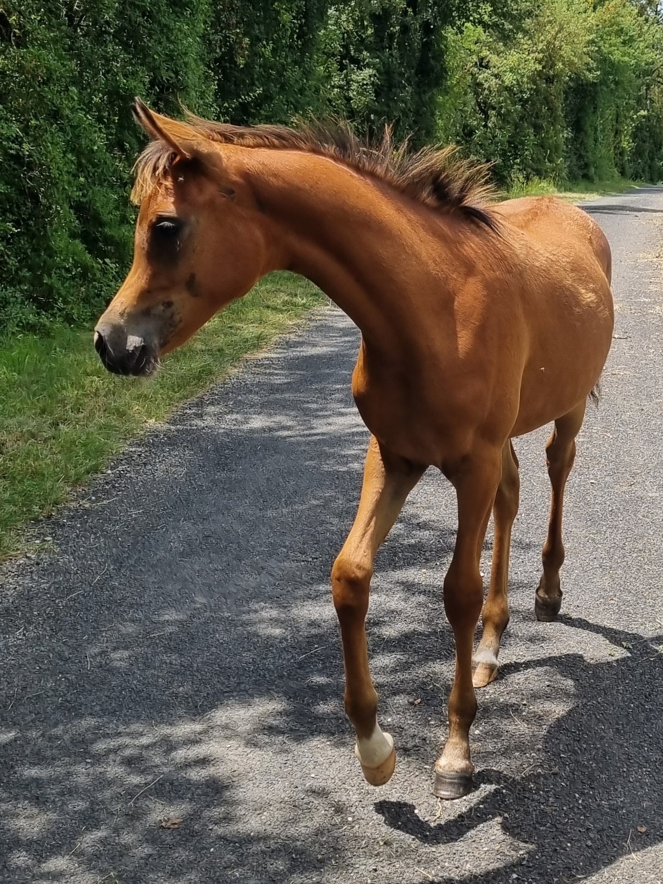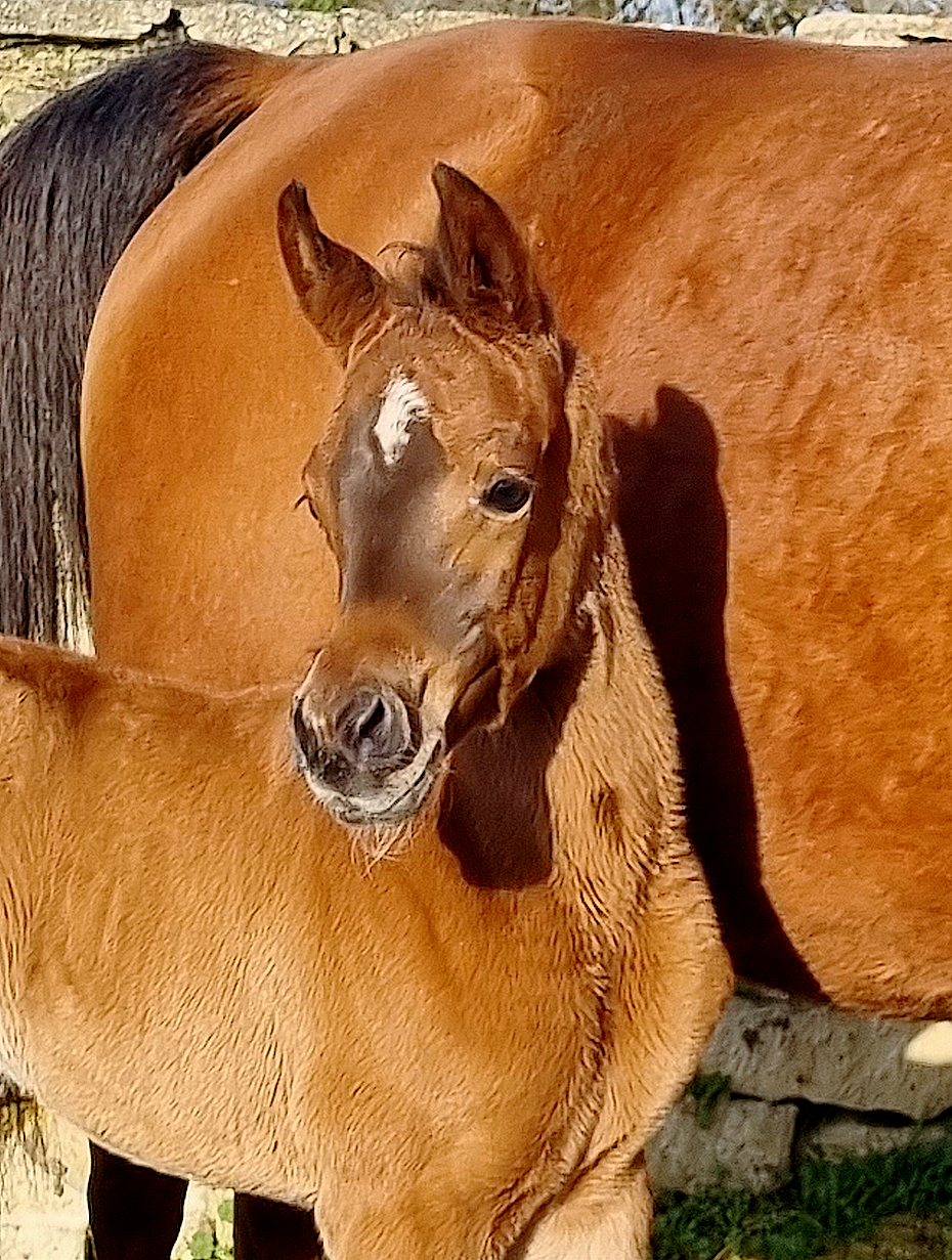 Priz présente une superbe tête bien typée, front large, du dish, de jolis yeux, un tout petit bout de nez, une magnifique encolure naturellement arquée avec une mitbah fantastique, un ensemble dos/rein/croupe solide et très bien attaché, une croupe puissante, longue et horizontale, une très bon bassin oblique et long, des membres solides avec de l'os, de bons aplombs et des mouvements à se damner, avec beaucoup de force et d'équilibre naturel ! Une conformation vraiment supérieure !