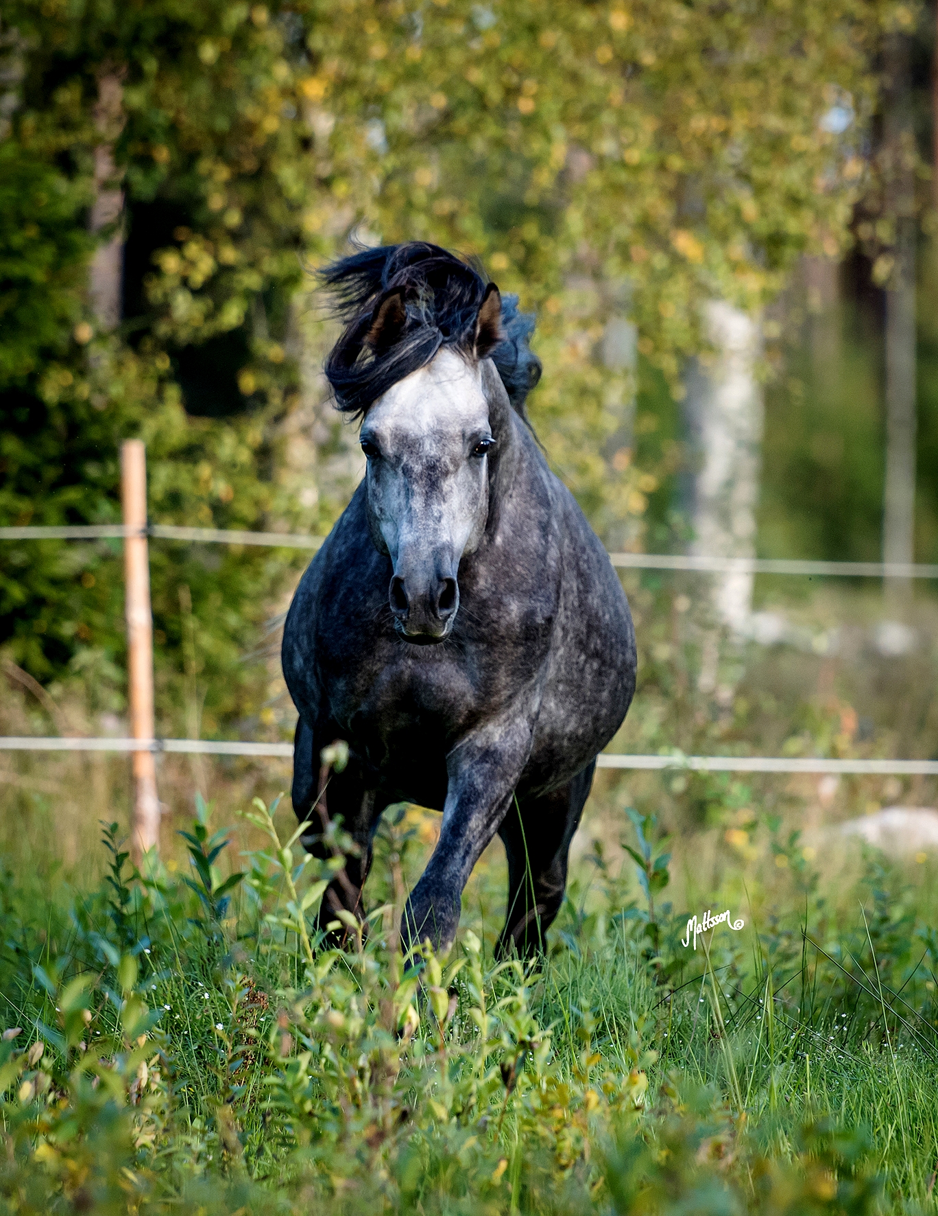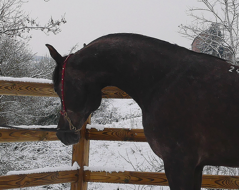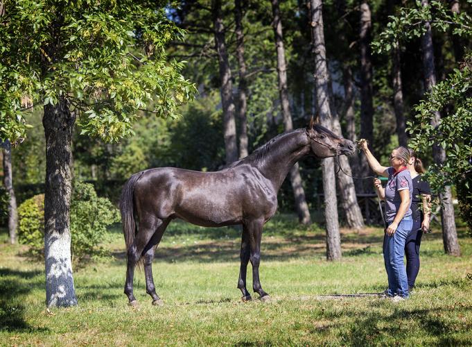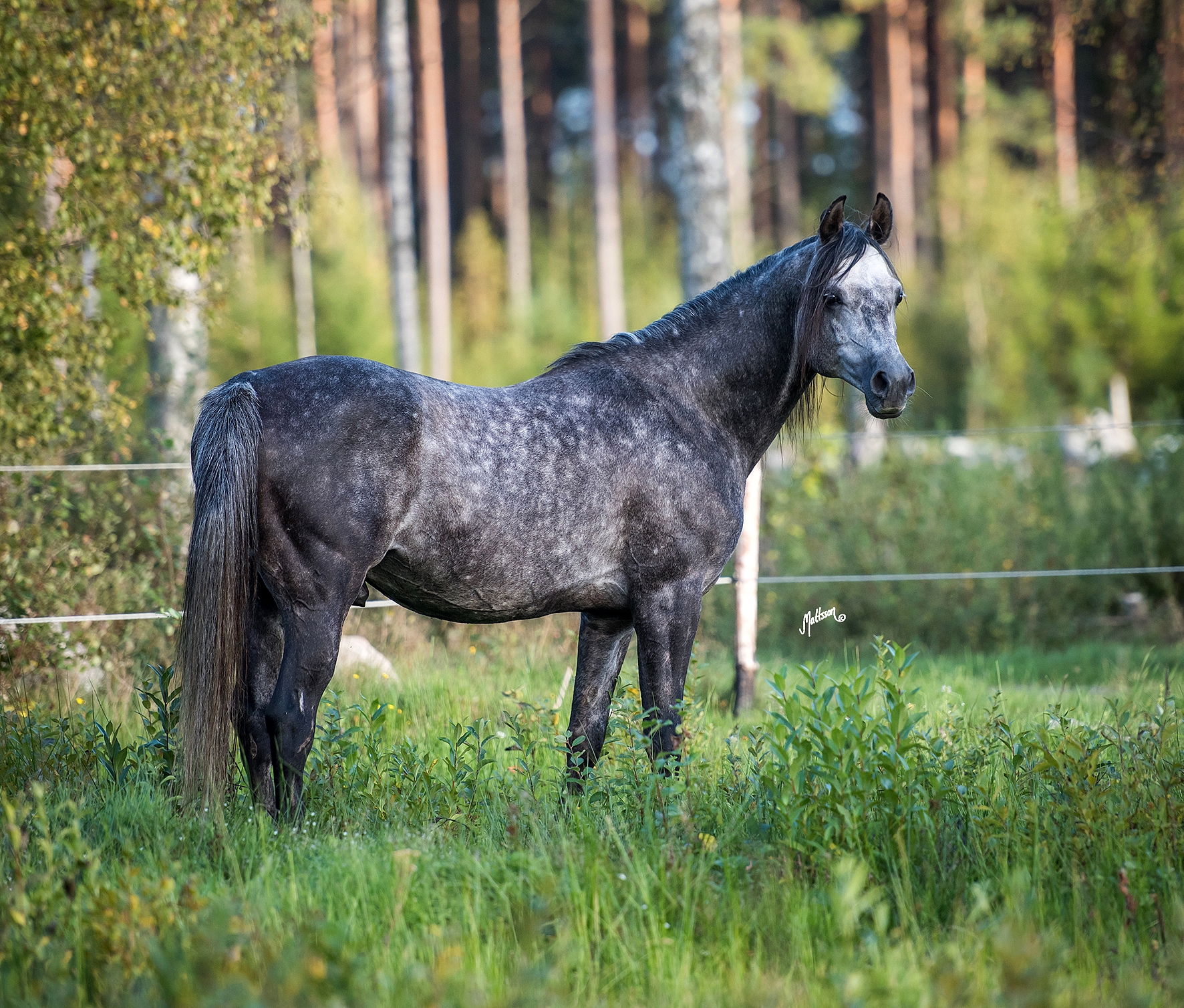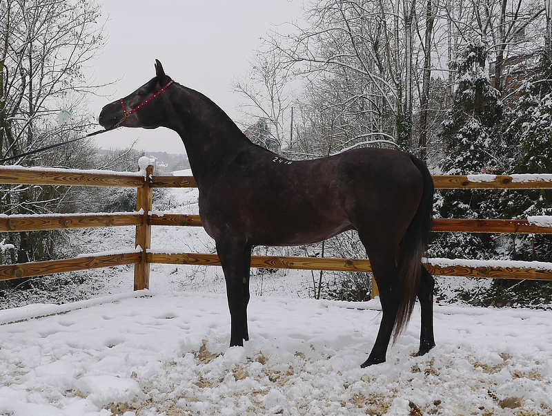 Je contactai donc Elena Werdenberg, qui gère les relations commerciales de Tersk Stud avec les clients étrangers et est également une collègue Juge, pour lui exprimer mon intérêt pour Prize Tersk. Deux ans plus tard, un message d’Elena : « Nous voulons savoir si tu es encore intéressée par Prize ». Je n’ai pas hésité une seconde. Le superbe gris sombre, fils du légendaire Moment, hors de la très bonne lignée maternelle de Pantomima, allait rejoindre la collection d’étalons purs russes de Faber Arabians !